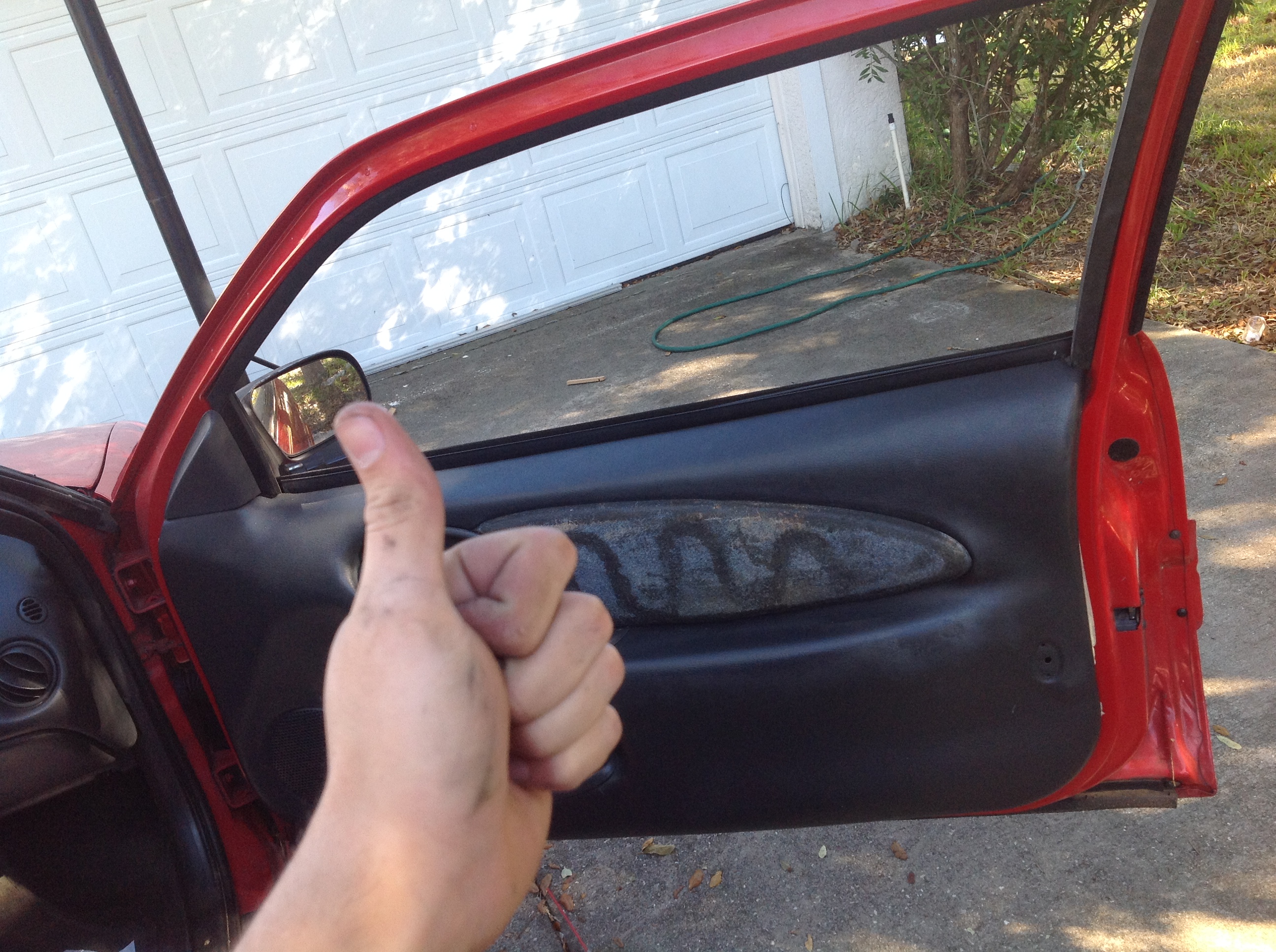 You will need to hold the window up once you remove the screws of the regulator mechanism so that the window does not fall off the regulator mechanism.